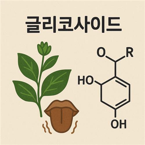 글리코사이드라고 해서 모두 쓴맛을 내는 것은 아닙니다. 구조와 농도에 따라 단맛, 떫은맛, 거의 맛을 느끼기 어려운 경우까지 다양하며, 일부는 향기 전구체 역할만 하는 경우도 있습니다. 다만 우리가 “쓴맛이 강하다”라고 느끼는 많은 식물성 식품에 글리코사이드가 관여하는 것은 사실입니다.