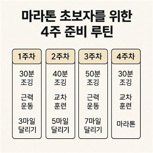 마라톤, 러닝, 초보자 운동, 4주 준비, 달리기 루틴, 마라톤 팁, 건강한 습관, 체력 훈련, 운동 계획, 마라톤 준비