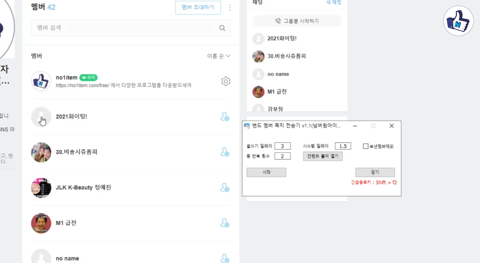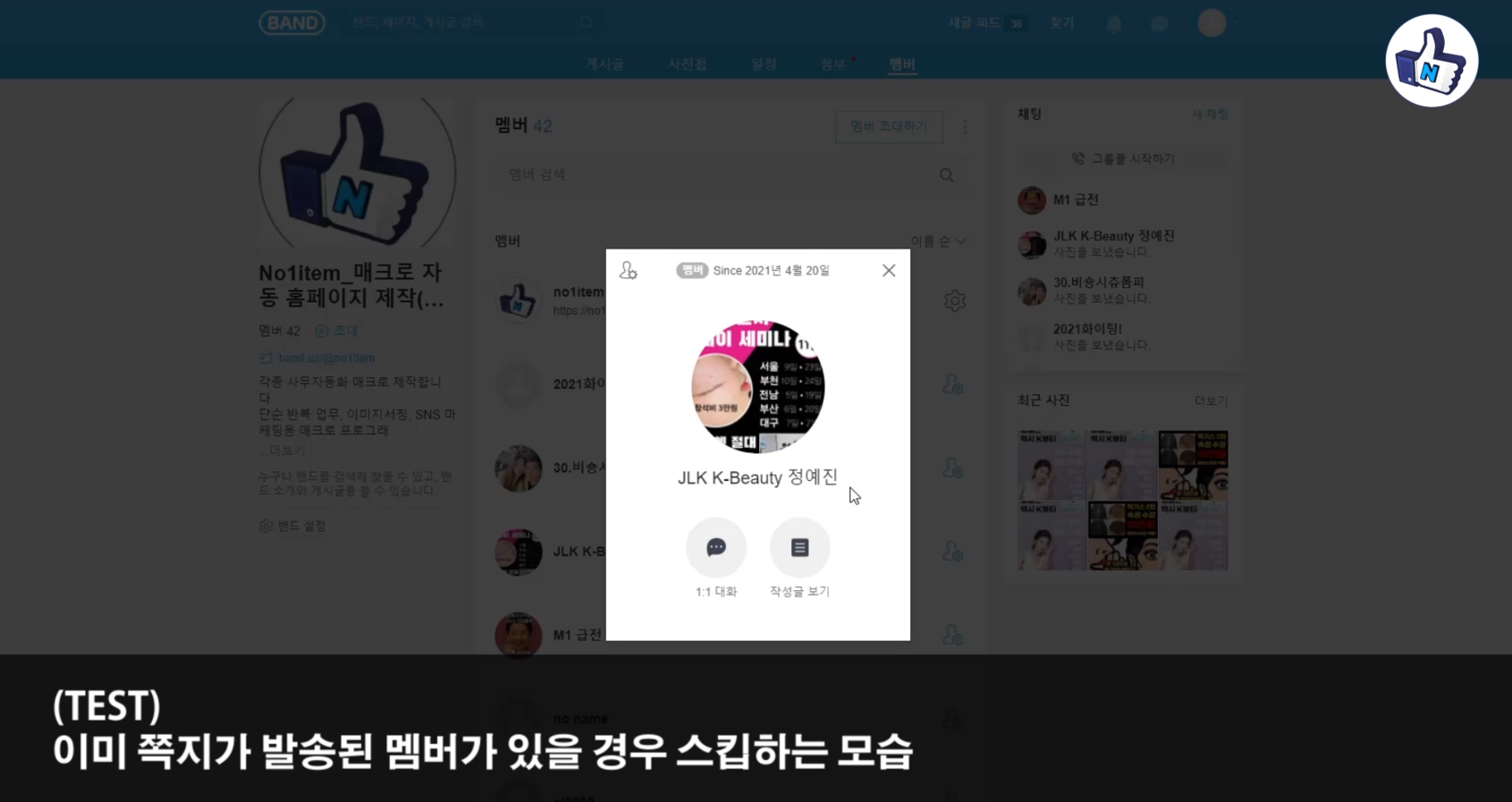 매크로_BAND(밴드) 회원(유저) 메시지 전송기 v1.1