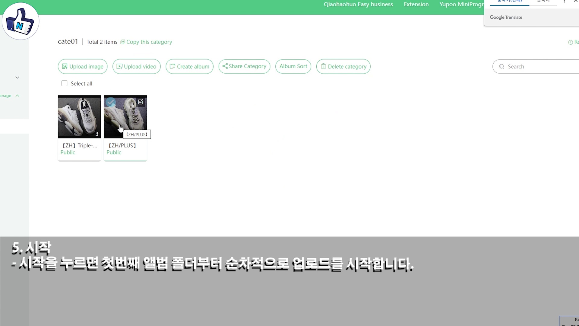 - 시작을 누르면 첫번째 앨범 저장폴더부터 순차적으로 업로드를 시작합니다.
