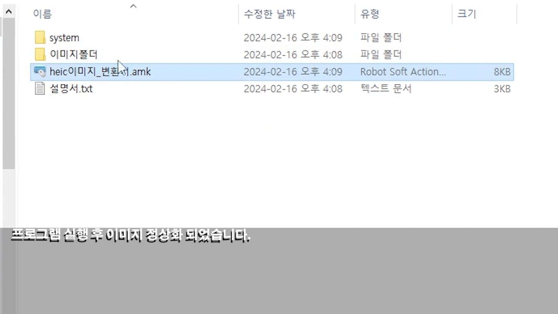 이미지문서함에 heic 사진자료를 넣기 - 자동화(exefile) 실행