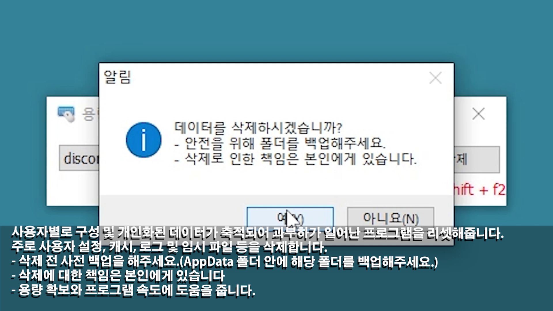 - DELETE 전 사전 백업을 해주세요.(AppData 문서함 안에 해당 FOLDER(저장폴더)를 백업해주세요.)