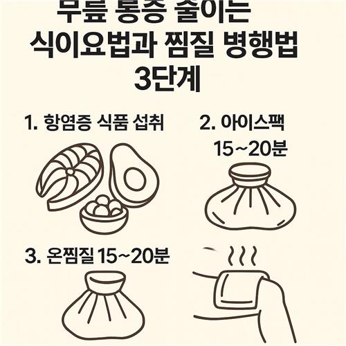 무릎통증, 식이요법, 항염식단, 냉찜질, 온찜질, 관절건강, 오메가3, 강황, 체중관리, 일상루틴