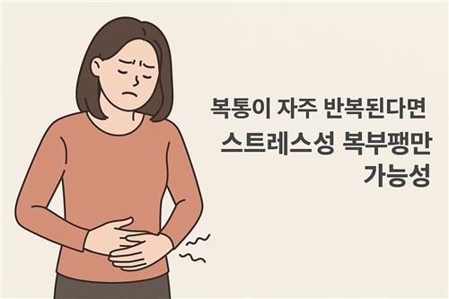스트레스를 받으면 위장 기능 저하 → 장내 가스 축적 → 복부팽만 유발