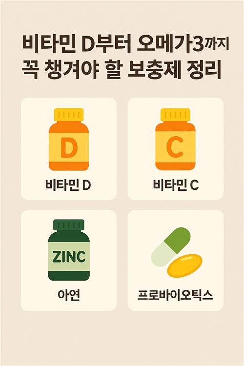 비타민D, 오메가3, 마그네슘, 종합비타민, 프로바이오틱스, 건강기능식품, 보충제추천, 면역력, 장건강, 영양제정보
