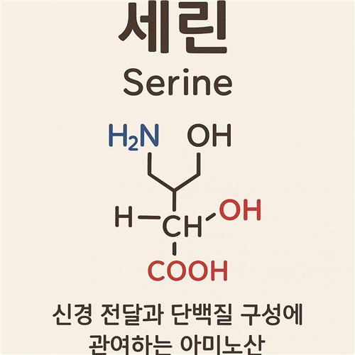 세린은 단순히 하나의 아미노산이 아니라, 단백질 구조 형성 + 효소 기능 + 신경 신호 조절이라는 세 가지 축을 동시에 담당하는 숨은 핵심 플레이어라고 이해하시면 좋습니다.