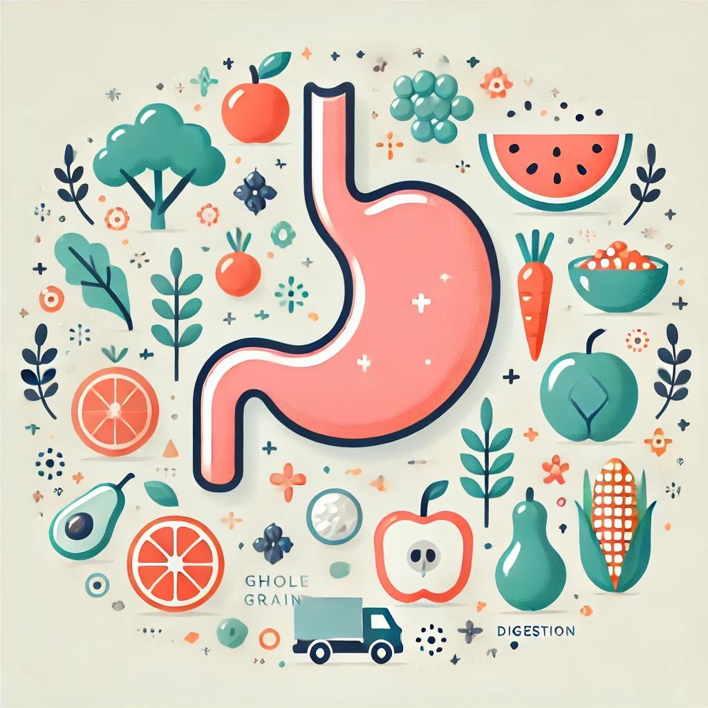 채소, 과일, 전곡류 등의 식이섬유는 장 운동을 촉진하고 소화기 건강을 향상시킵니다.