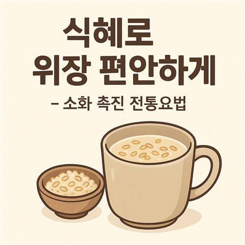 | 식혜 | 쌀, 엿기름 | 소화 효소 작용으로 전분 분해 | 포만감 있음, 시원하게 마시면 효과↑ |