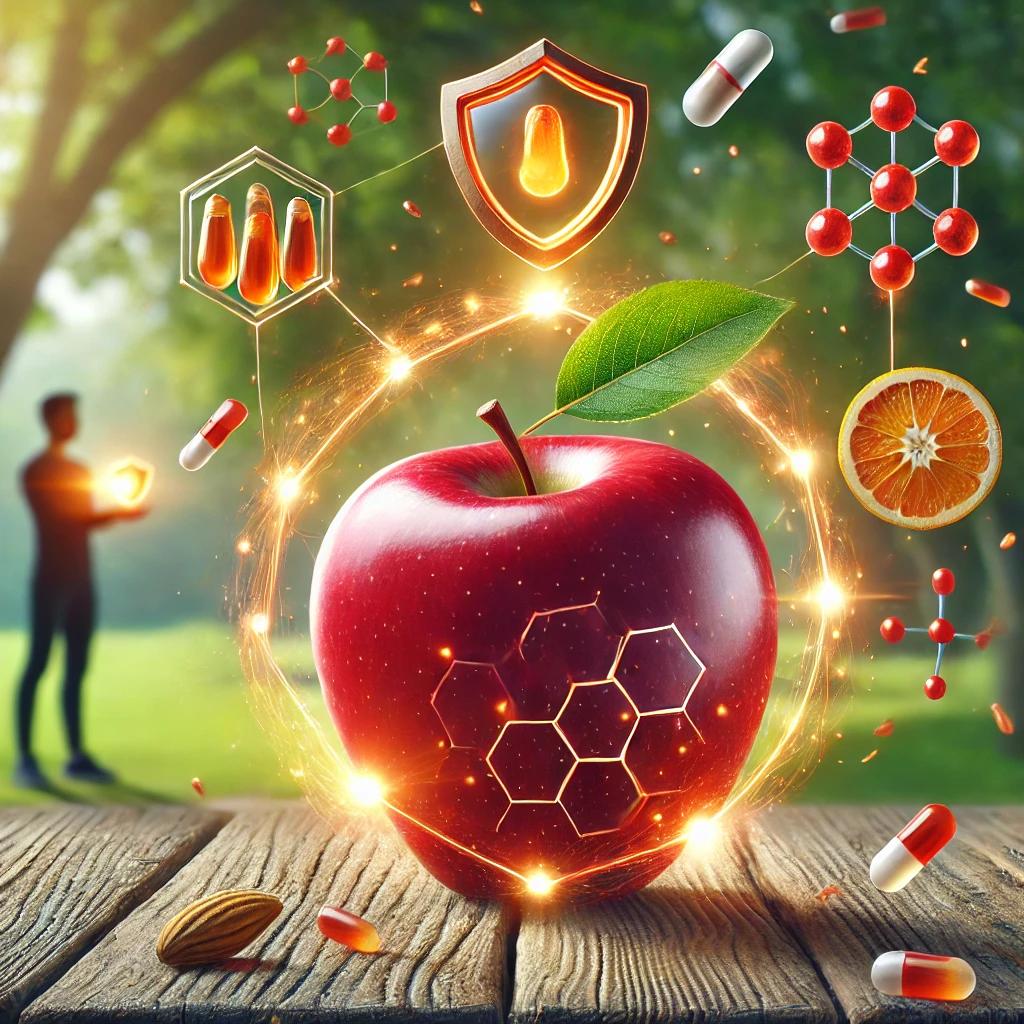 사과에는 다양한 항산화 성분이 풍부합니다. 대표적으로 퀘르세틴(Quercetin)과 폴리페놀이 있는데요, 이 성분들은 체내 염증을 줄이고 면역 체계를 안정화하는 효과가 있어요.