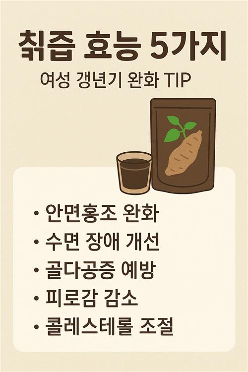 또, 칡즙은 에스트로겐 균형에만 좋은 게 아니라 신경 안정 효과, 체온 조절, 뼈 건강 유지에도 도움을 준다고 하니