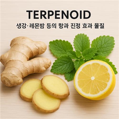 테르페노이드, 생강 효능, 레몬밤 효능, 향기 성분, 진정 효과, 아로마테라피, 허브 차, 스트레스 완화, 수면 건강, 천연 향료