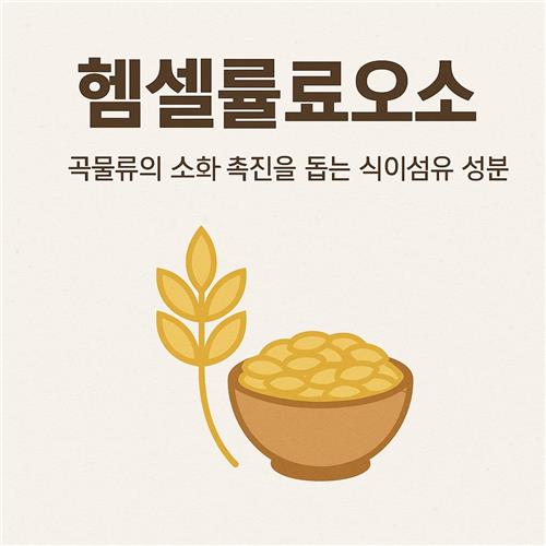 곡물류의 헴셀룰로오스는 소화 효소로 분해되지는 않지만, 장을 채워 주고 움직이게 만드는 역할 덕분에 “건강한 소화 리듬”을 유지하는 데 중요한 기반이 됩니다.