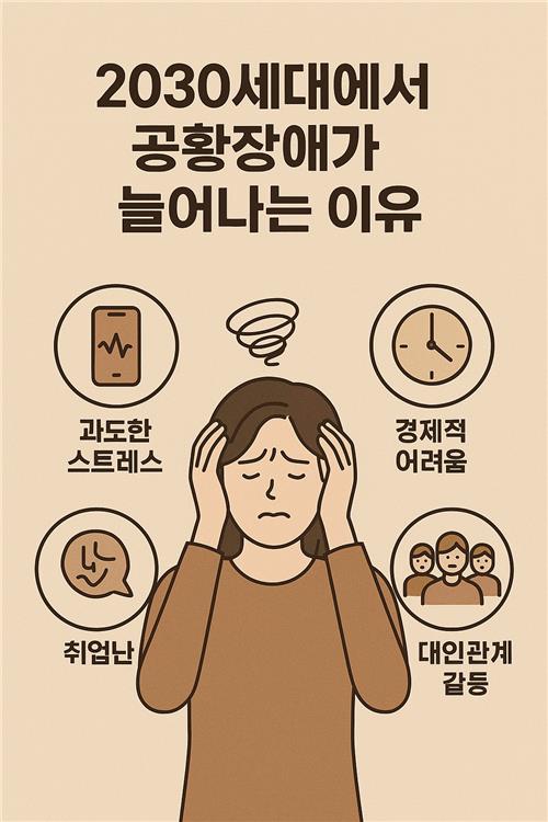 2030세대가 공황장애에 특히 취약한 이유는 사회적, 경제적, 심리적 압박이 복합적으로 작용하기 때문입니다. 요즘 청년들은 학업, 취업, 인간관계, 경제적 독립 등 다양한 스트레스에 노출되어 있죠. 그에 비해 이를 해소할 수 있는 정서적, 사회적 지지 체계는 점점 약해지고 있는 상황입니다.